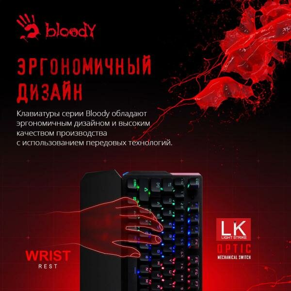 Клавиатура A4 Bloody B885N механическая черный USB for gamer LED (подставка для запястий)