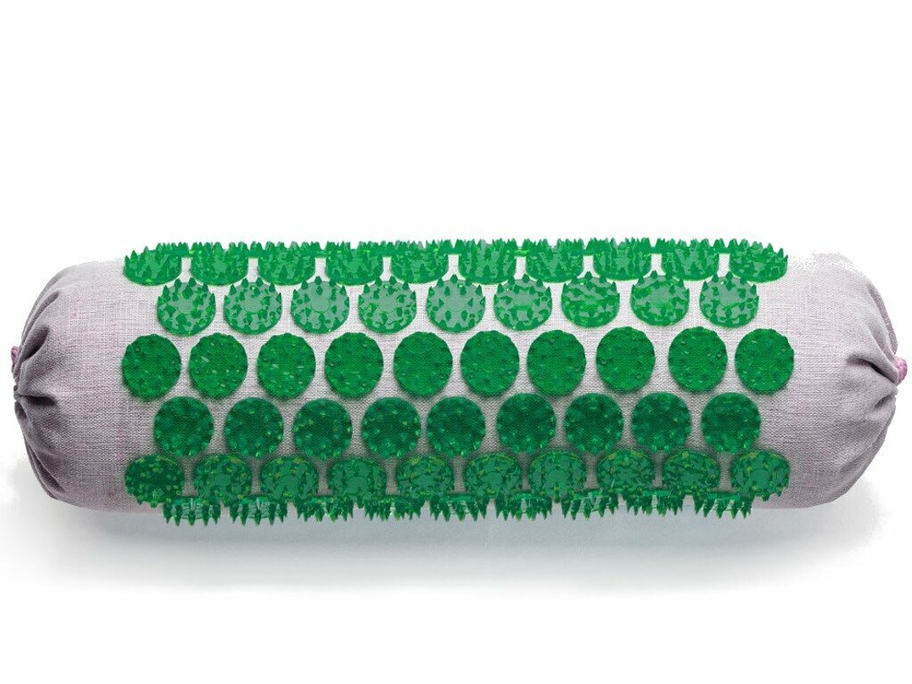 Аппликатор Кузнецова. Валик массажный акупунктурный. Универсальный массажер, зеленый (менее острые иглы). Цвет ткани - "натуральный лён".