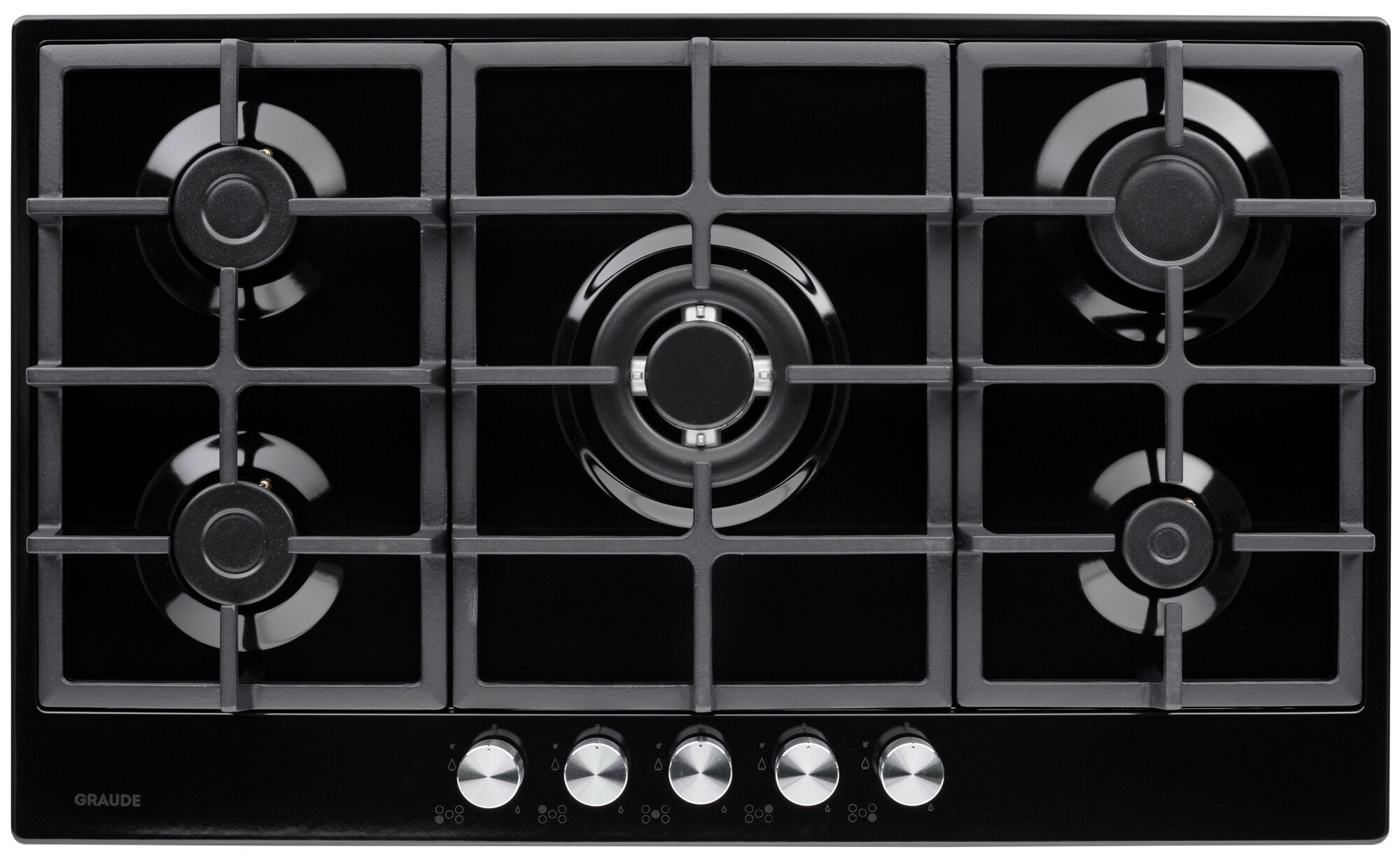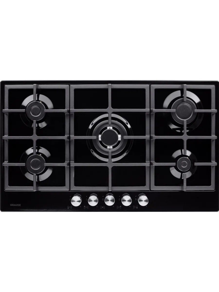 Встраиваемая варочная панель Graude Газ, 90 см, 5 конфорок, механическое управление, черный цвет