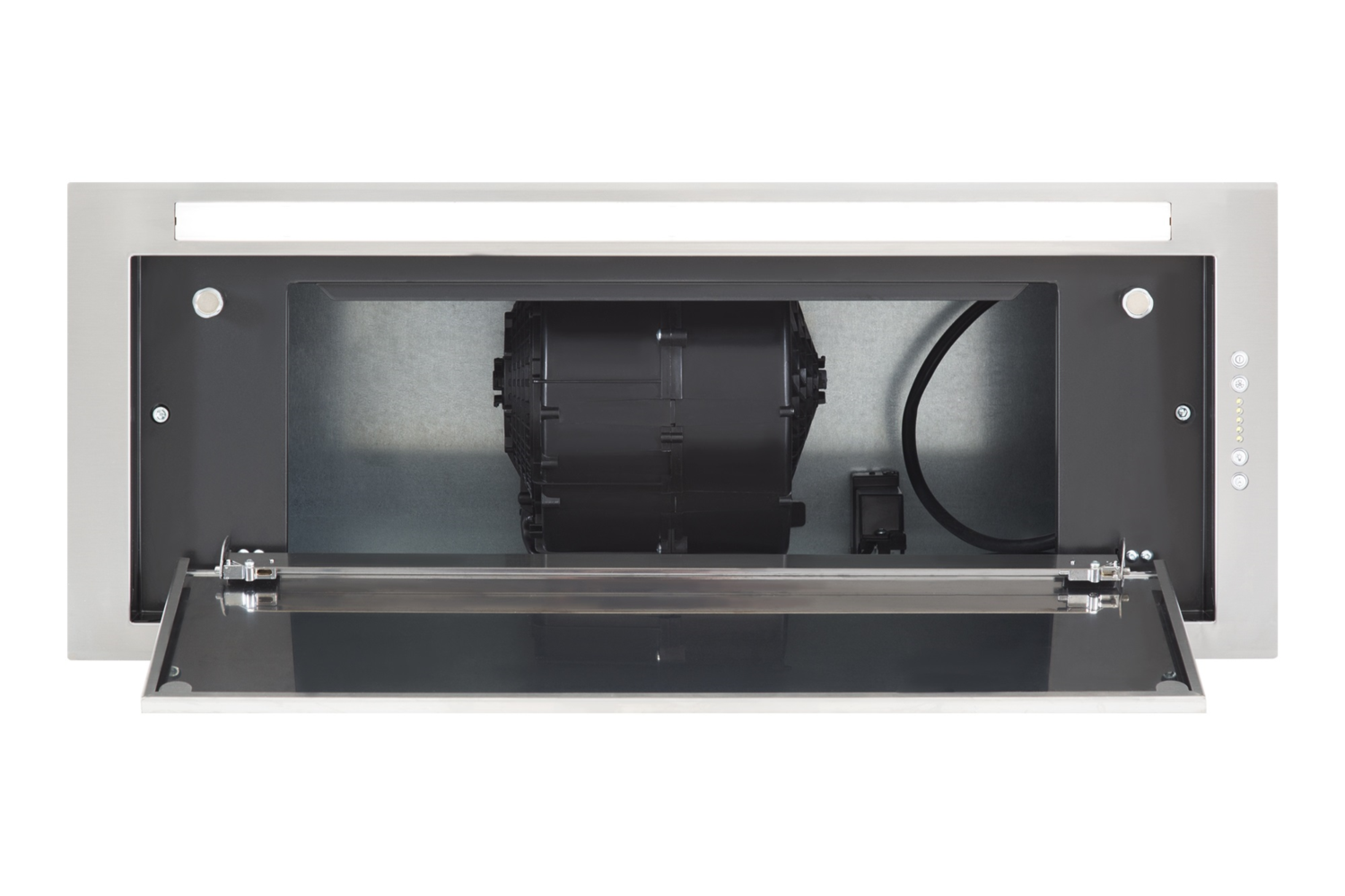 | Плюсы: | Легкая установка (буквально два болта), практически заподлицо со шкафом (у меня немного винтом нижняя пластина, поэтому не идеально), мощный мотор и достаточно тихий.