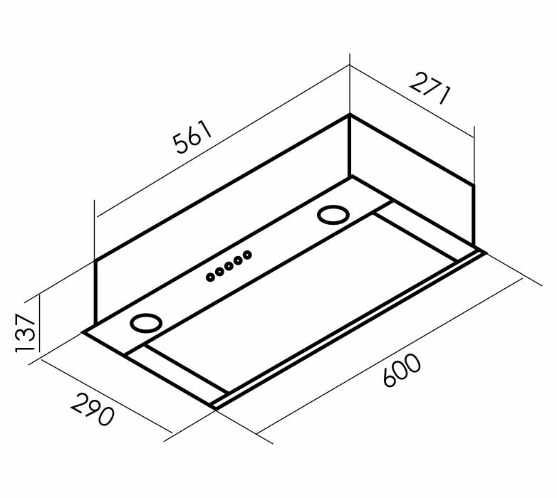 Кухонная вытяжка встраиваемая MBS MONSTERA 160 BLACK/60 см/производительность 750м3/ч, низкий уровень шума.