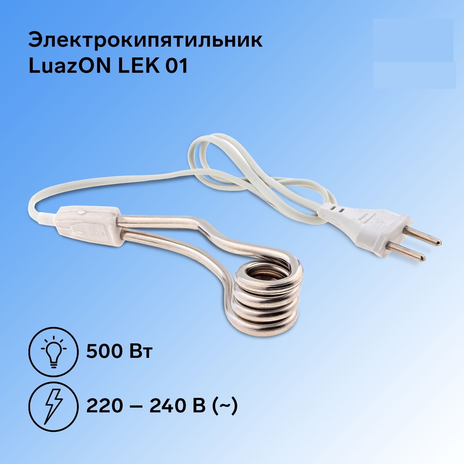 Купить Luazon Home Электрокипятильник Luazon LEK 01, 500 Вт, спираль кольцо, 11х3 см, 220 В, белый