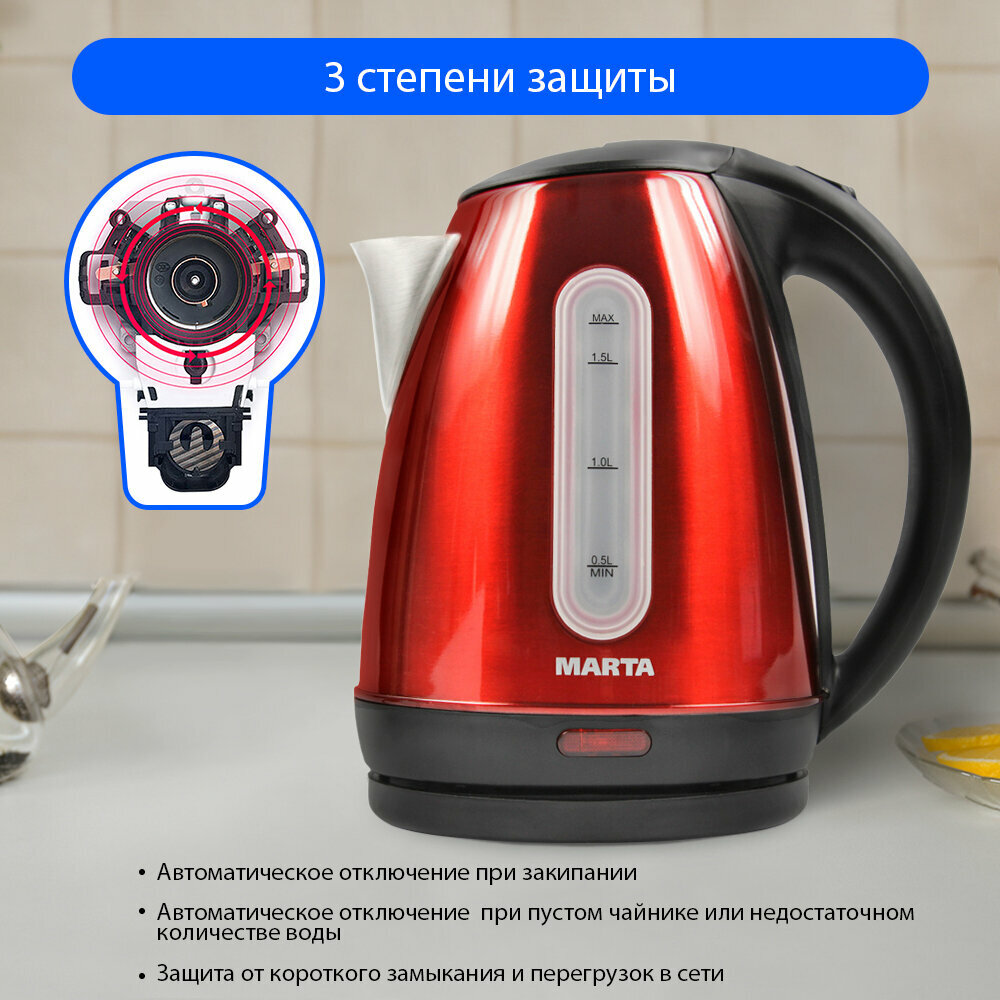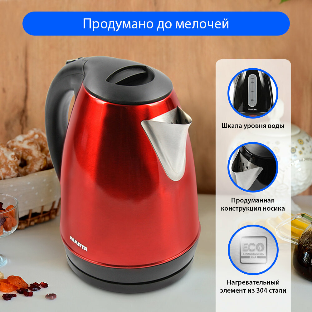 Чайник электрический Marta MT-1089 металлический красный рубин