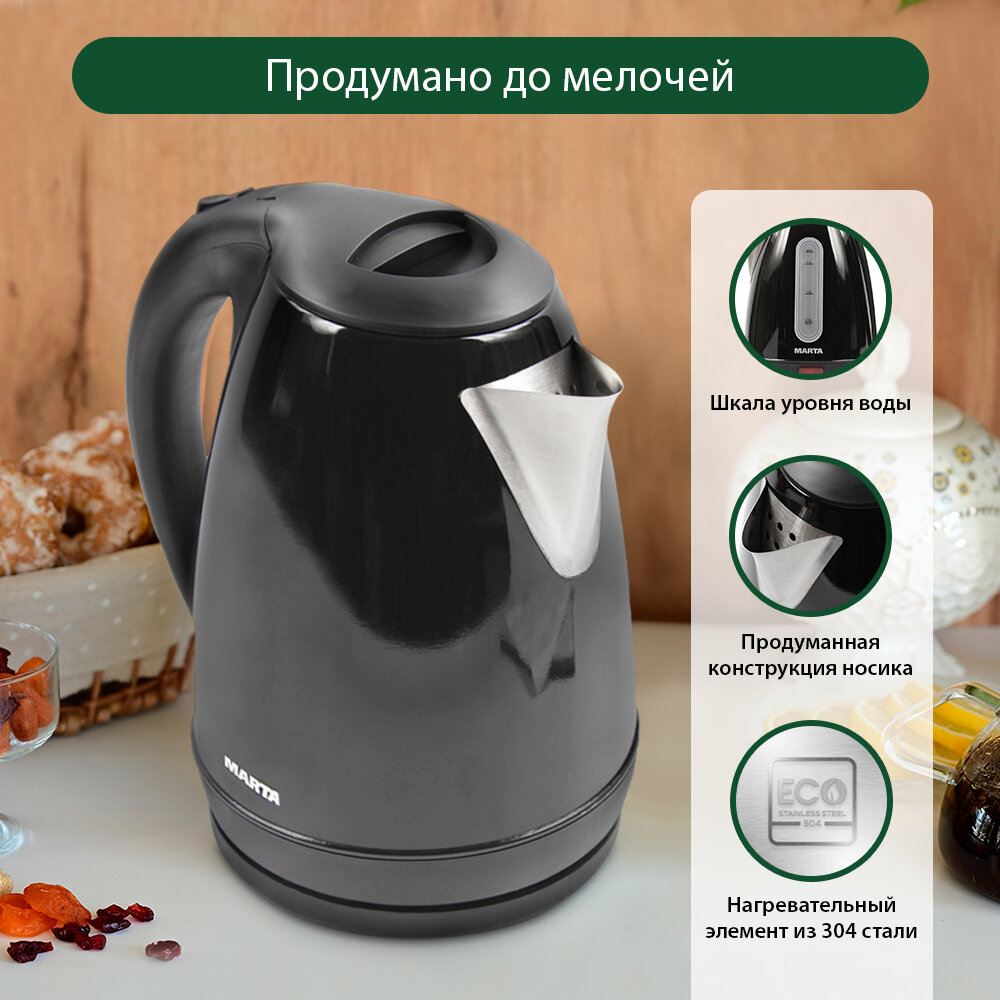 Чайник электрический Marta MT-1089 металлический черный жемчуг
