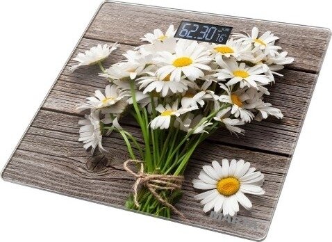 | Отзыв: | Сразу привлек этот рисунок - букет ромашек, другие весы я уже не захотела)). Весы точные, понравилось что цифры на дисплее светящиеся, прикольно так и лучше видно. Включаются и отключаются сами, индикация заряда батареи есть. |