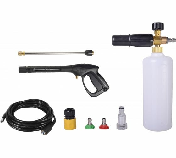 | Плюсы: | Достаточно сильный напор, хорошая комплектация в которую входит пенник, две насадки. |