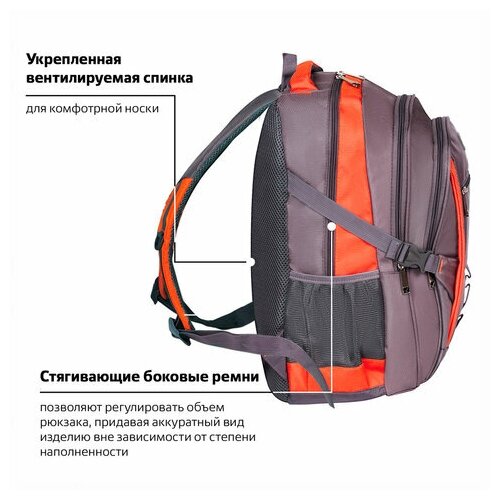 Рюкзак BRAUBERG "SpeedWay 2", 25 л, размер 46х32х19 см, ткань, серо-оранжевый, 224448 интересное: