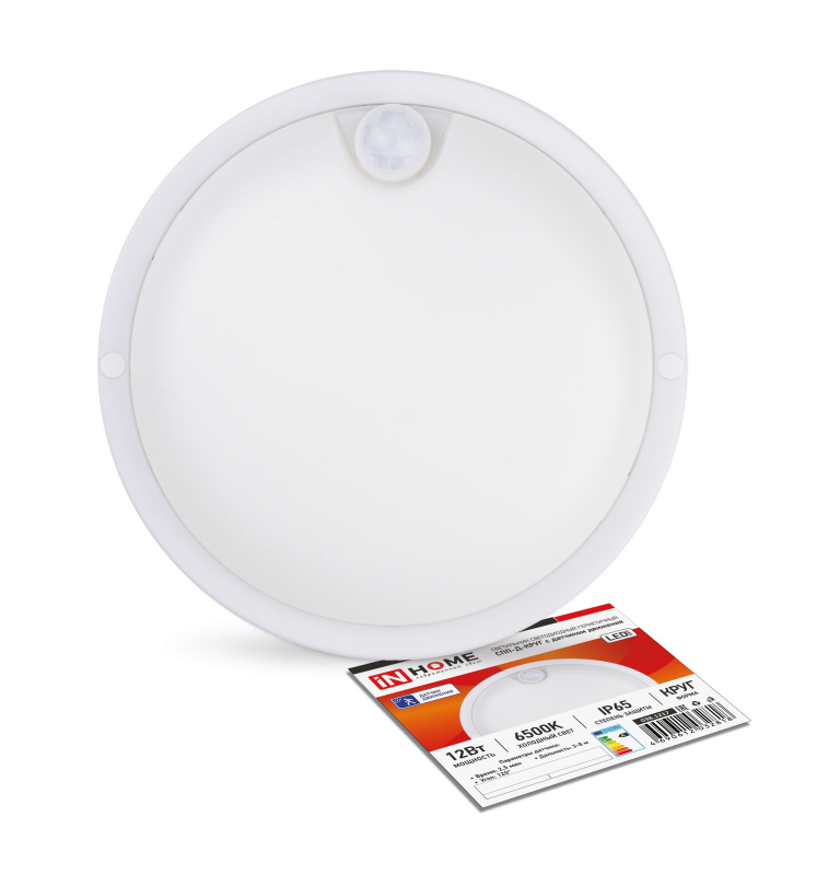IN HOME Светильник светодиодный герметичный СПП-Д-КРУГ 12Вт 230В 6500К 960Лм с датч. движ. IP65 IN HOME 4690612032818