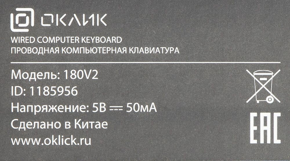 Купить Клавиатура Oklick 180V2, USB, черный [1185956]