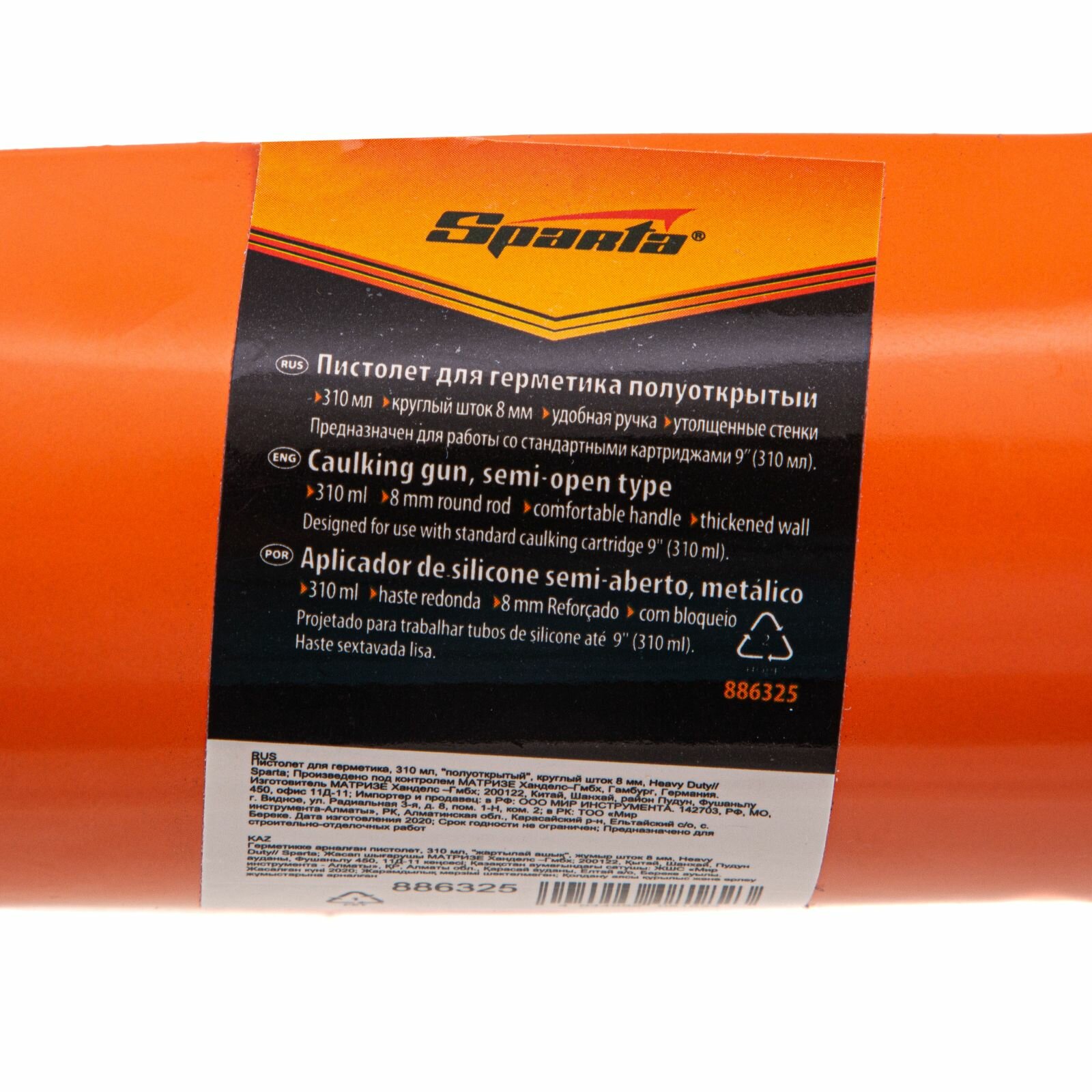 Пистолет для герметика, 310 мл, полуоткрытый, круглый шток 8 мм, Heavy Duty SPARTA 886325