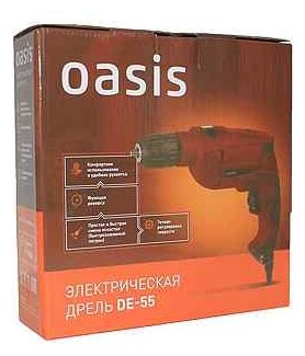 Дрель эл. Oasis DE-55 /550Вт, 2800 об/мин, 220 В/50 Гц, быстрозажим. сверлильн. патрон, реверс, диаметр сверл. в древесине 20 мм, в стали 10 мм / интересное:
