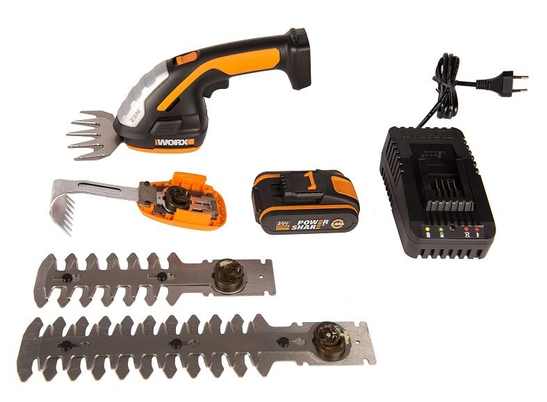 Ножницы для стрижки травы и кустарников в комплекте с тяпкой WORX WG801E.5, 20В, 2Ач x1, ЗУ 2А, коробка