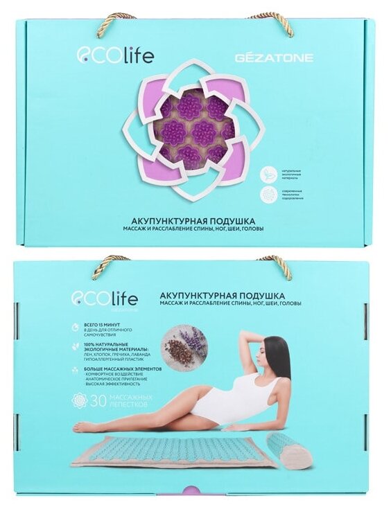 Gezatone EcoLife Массажный коврик акупунктурный 72х42см бирюзовый, 1 шт