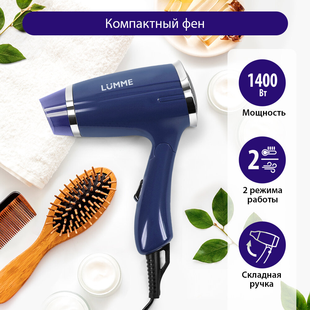 Фен Lumme LU-1057 бордовый гранат MAX 1400W 2 режима мощности, концентратор, складная ручка, автоотк .