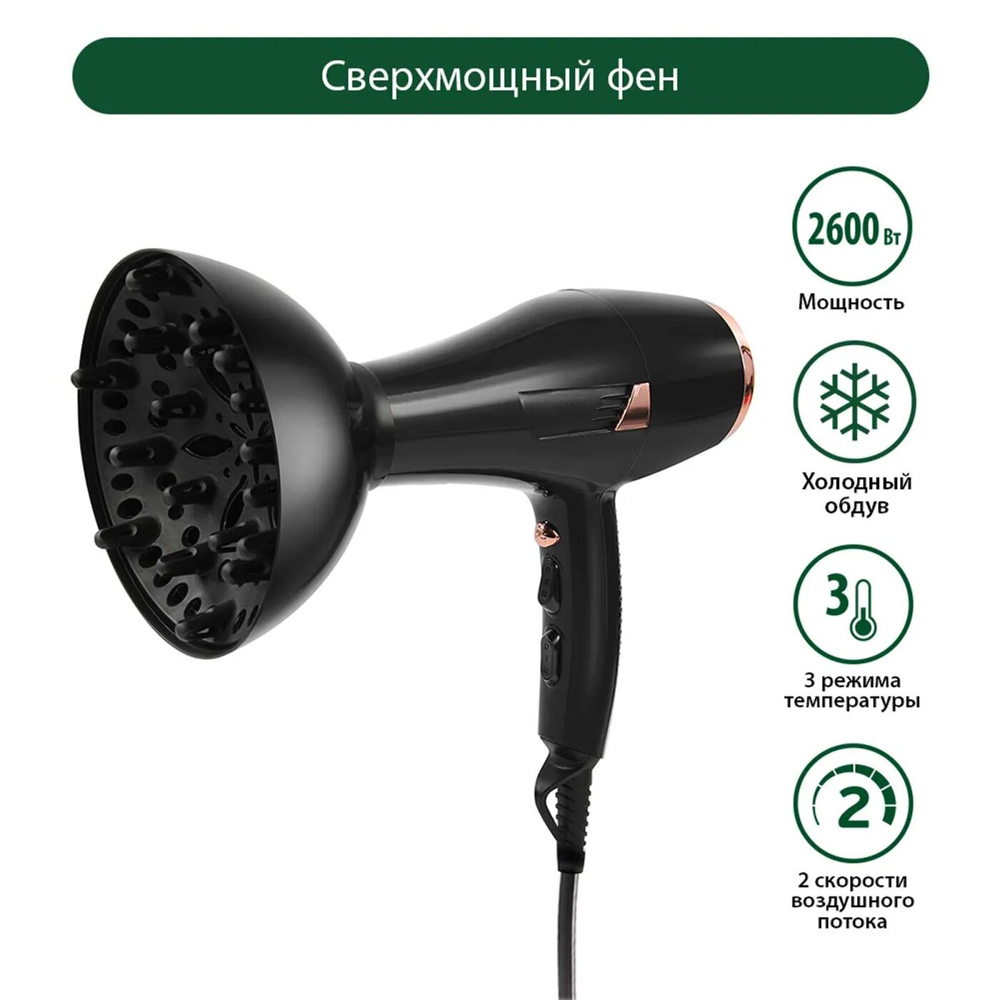 | Плюсы: | Мощный фен. Хороший большой диффузор.