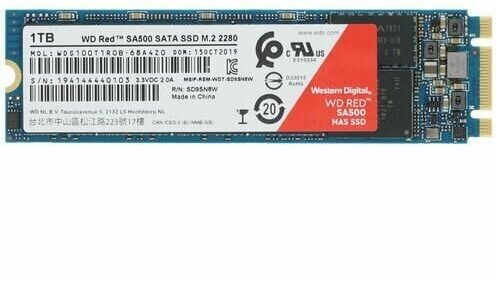 Твердотельный накопитель SSD Western Digital Red SA500 NAS, 1.0TB, M.2(22x80mm), SATA3, R/W 560/530MB/s, IOPs 95 000/85 000, TBW 600, DWPD 0.4 (12 мес.)