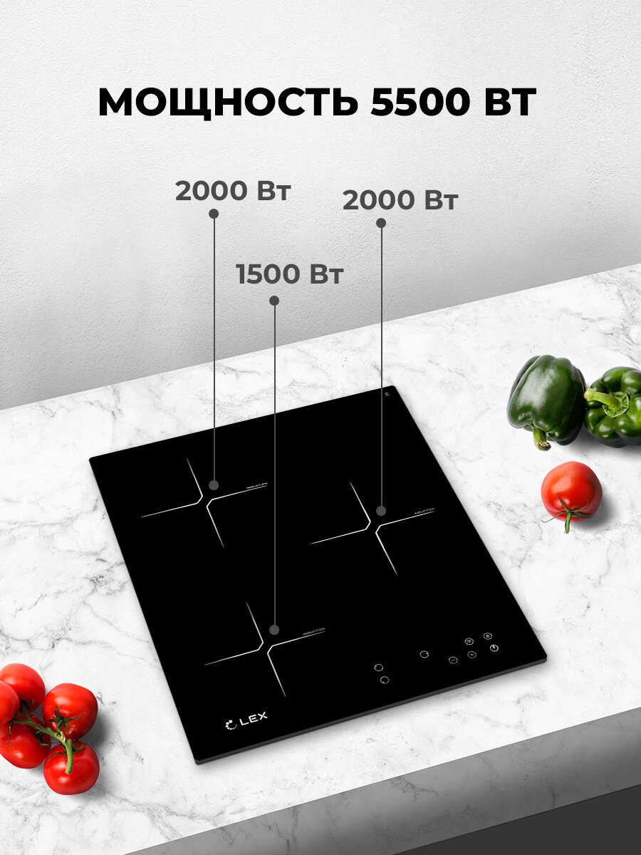 Индукционная варочная поверхность Lex EVI 430 BL [ст-керамика, конф.:3 шт, инд.-3, черный]