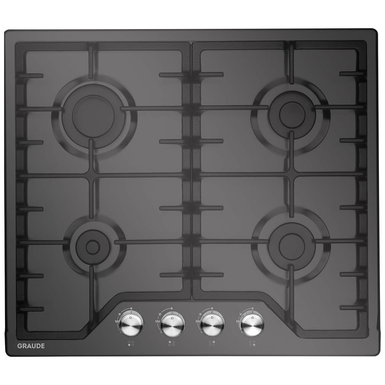 Встраиваемые газовые панели Graude/ Газ, 60 см, 4 конфорки, черный цвет