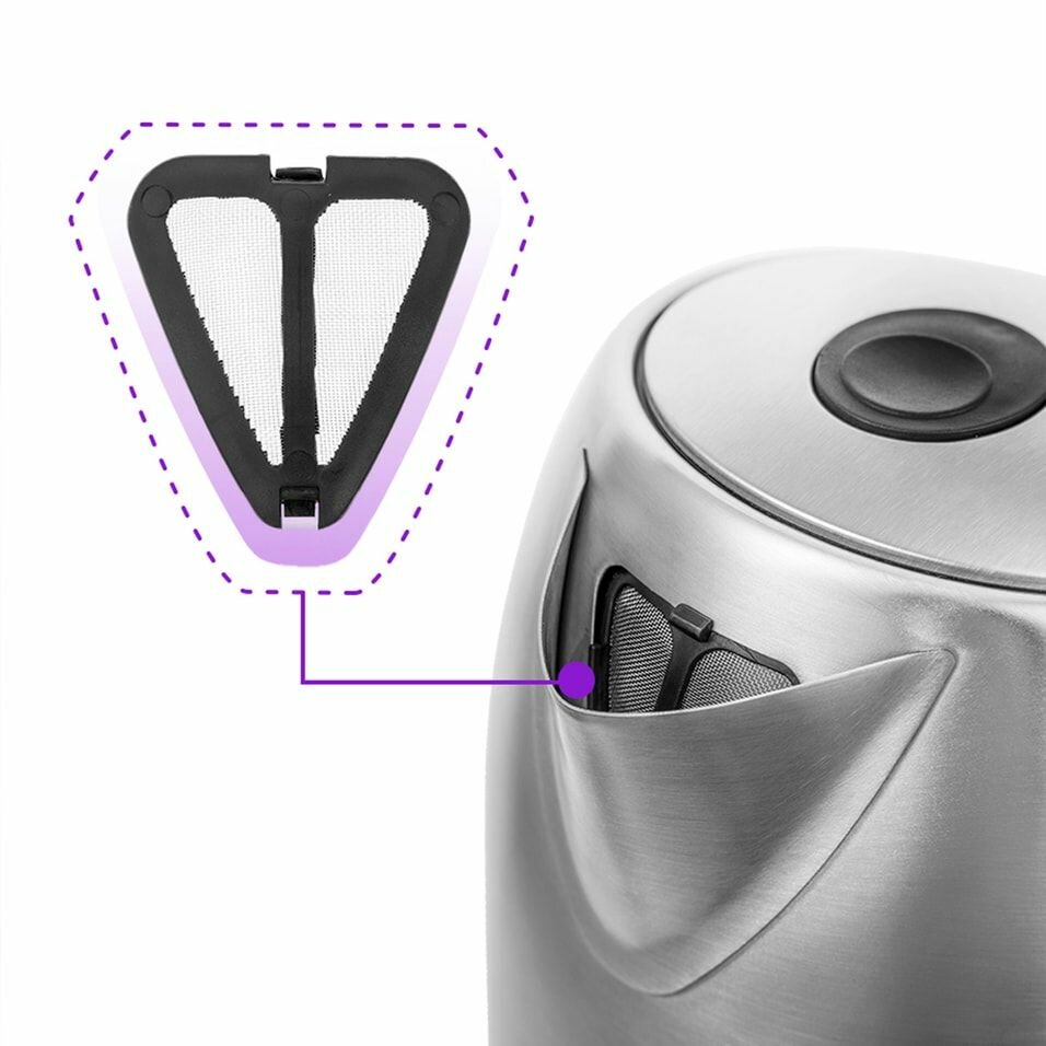 - Быстрый нагрев. - Регулировка температуры с уникальным цветом подсветки для каждого температурного режима. - Подогрев для поддержания установленной температуры. - Съёмная сетка на носике. |
