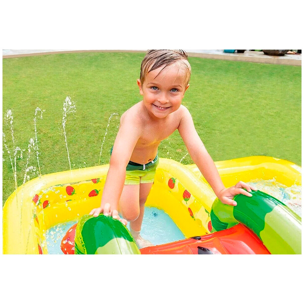 INTEX Игровой центр Фруктовый фейерверк 244*191*91 см с горкой и фонтаном, клапан 57158