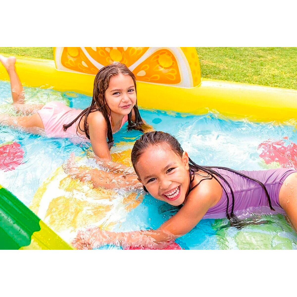 57158 Игровой центр-бассейн FUN'N FRUITY, с горкой, распылит., игрушками от 2 лет 244х191х91см