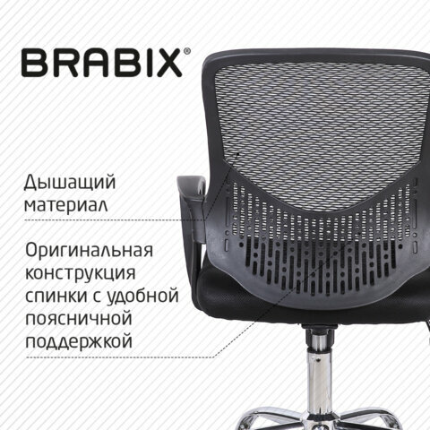 Кресло BRABIX "Next MG-318", с подлокотниками, хром, черное, 531834
