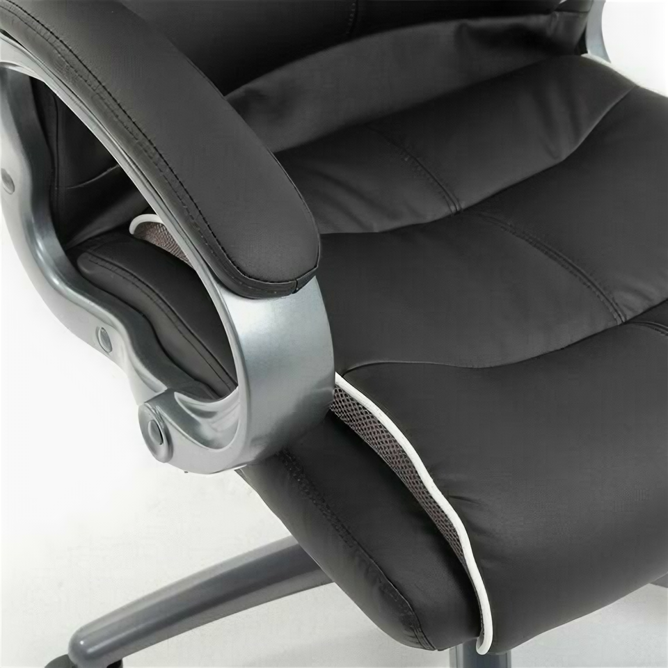 Компьютерное, офисное, удобное кресло для руководителя с подлокотниками Brabix Premium Strong HD-009, до 200 кг, экокожа черная, ткань серая, 531945