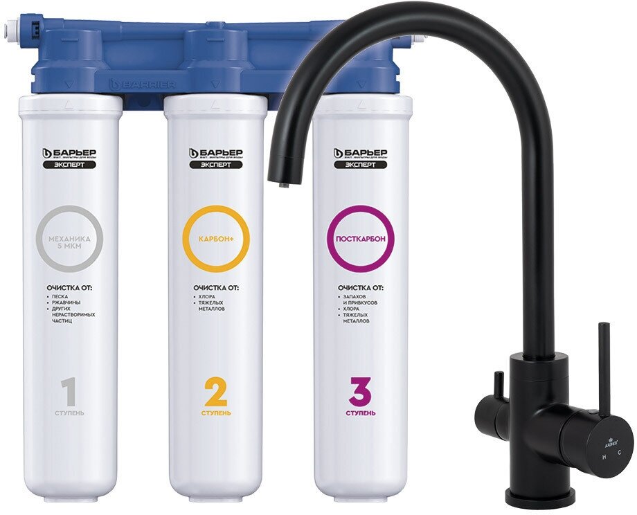 Смеситель для кухни с фильтром для питьевой воды KAISER Mercur 26744-9, цвет черный матовый
