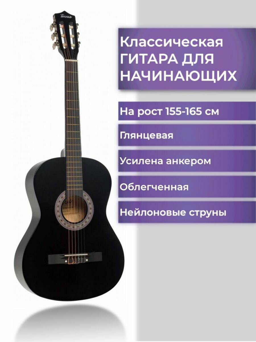 Купить TERRIS TC-3801A BK BK Гитара классическая 7/8
