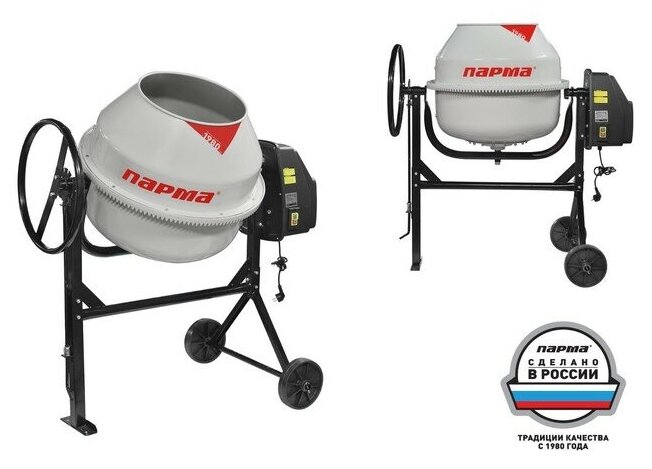 Бетоносмеситель парма БСЛ-160Ч (160л,700Вт,замес 80л,чугун венец и шестерня,30 об/мин) 53кг