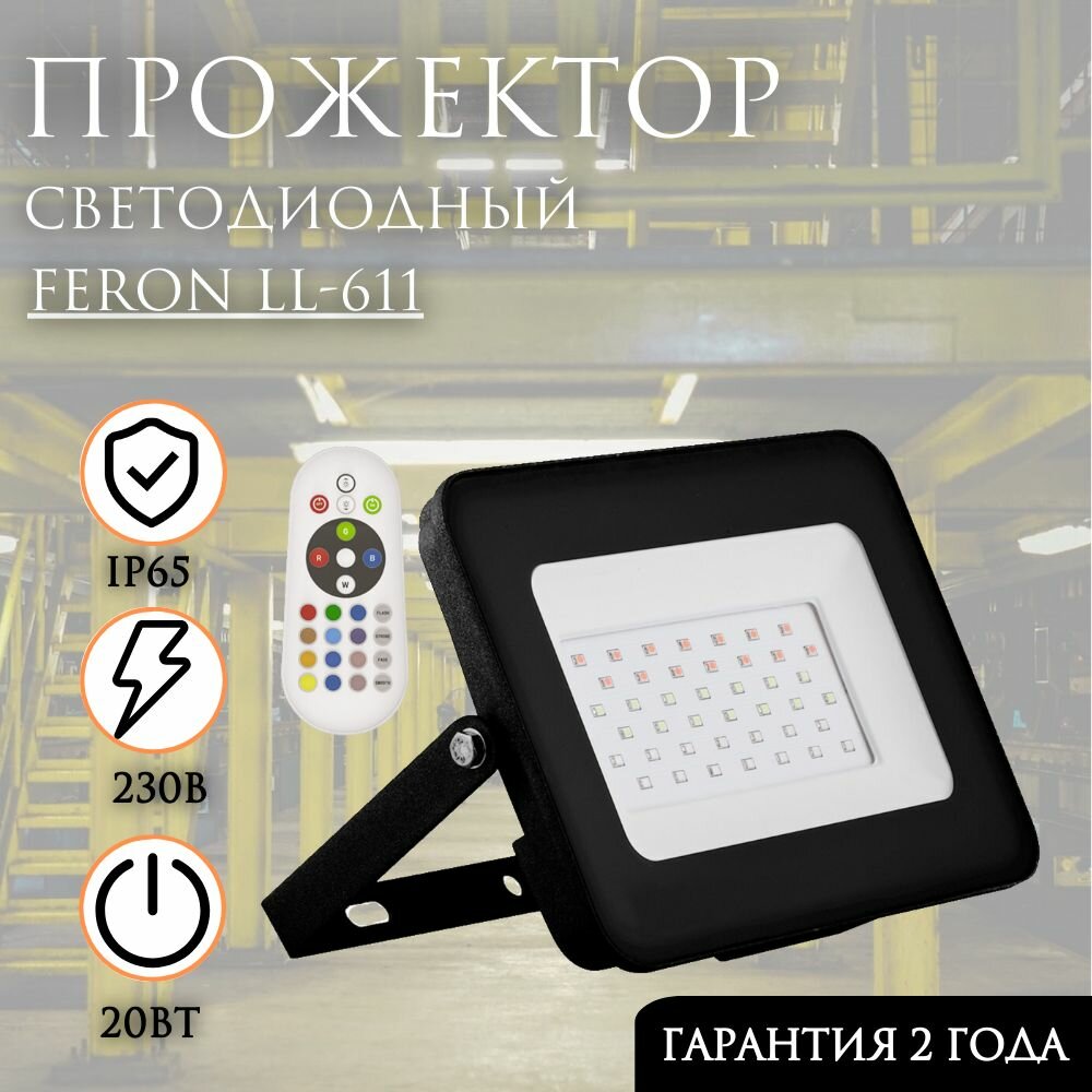 Светодиодный прожектор Feron "LL-611" 20Вт RGB
