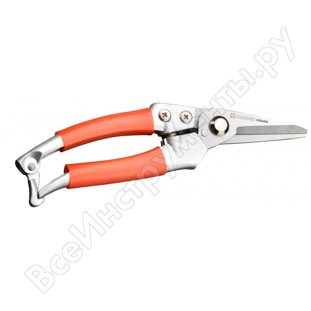 Секатор с цельнометаллической рукоятью узкое лезвие 200мм Harden 630416