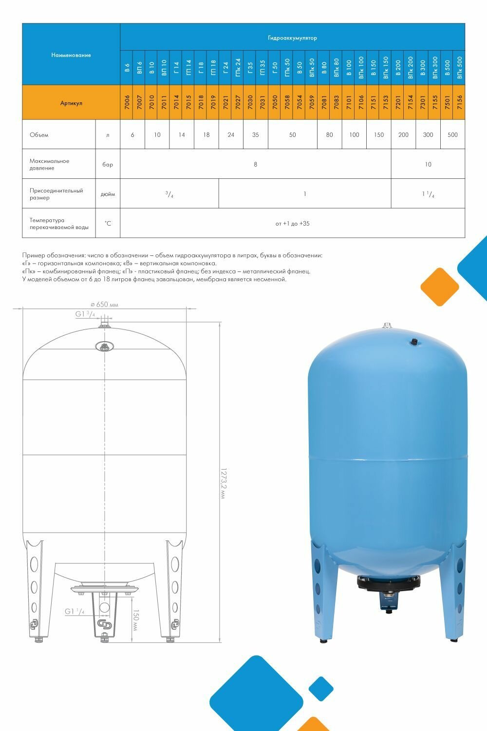 Бак гидропневмобак 300л. синий верт.1 1/4 комбинированный фланец ДЖИЛЕКС