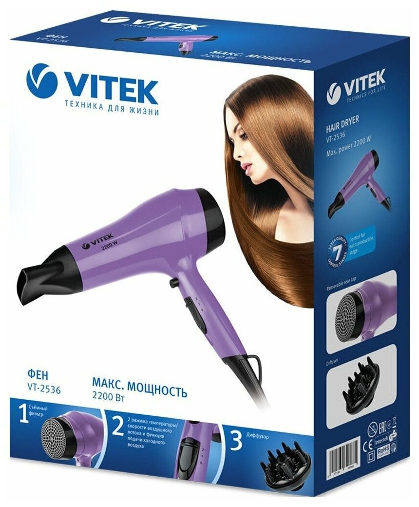 Ниже Вы можете прочитать отзывы на Фен VITEK VT-2536, violet, ознакомится с подробными характеристиками, посмотреть интересные обзоры и фотографии на Фен VITEK VT-2536, violet.