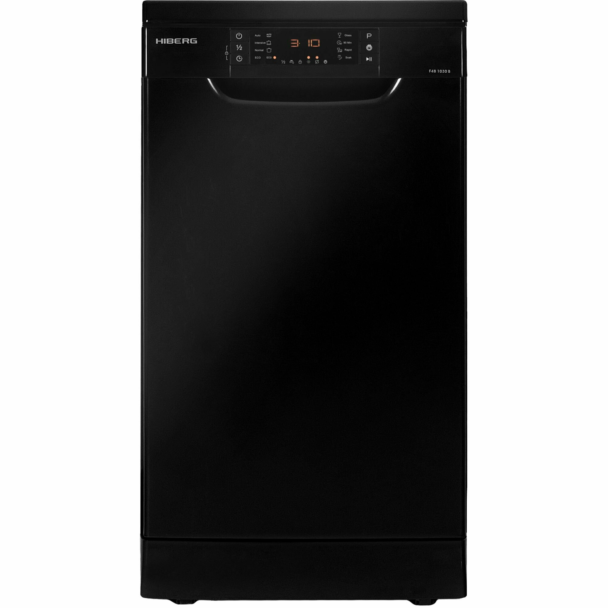 Посудомоечная машина HIBERG F48 1030 B, узкая, напольная, 44.8см, загрузка 10 комплектов, черный