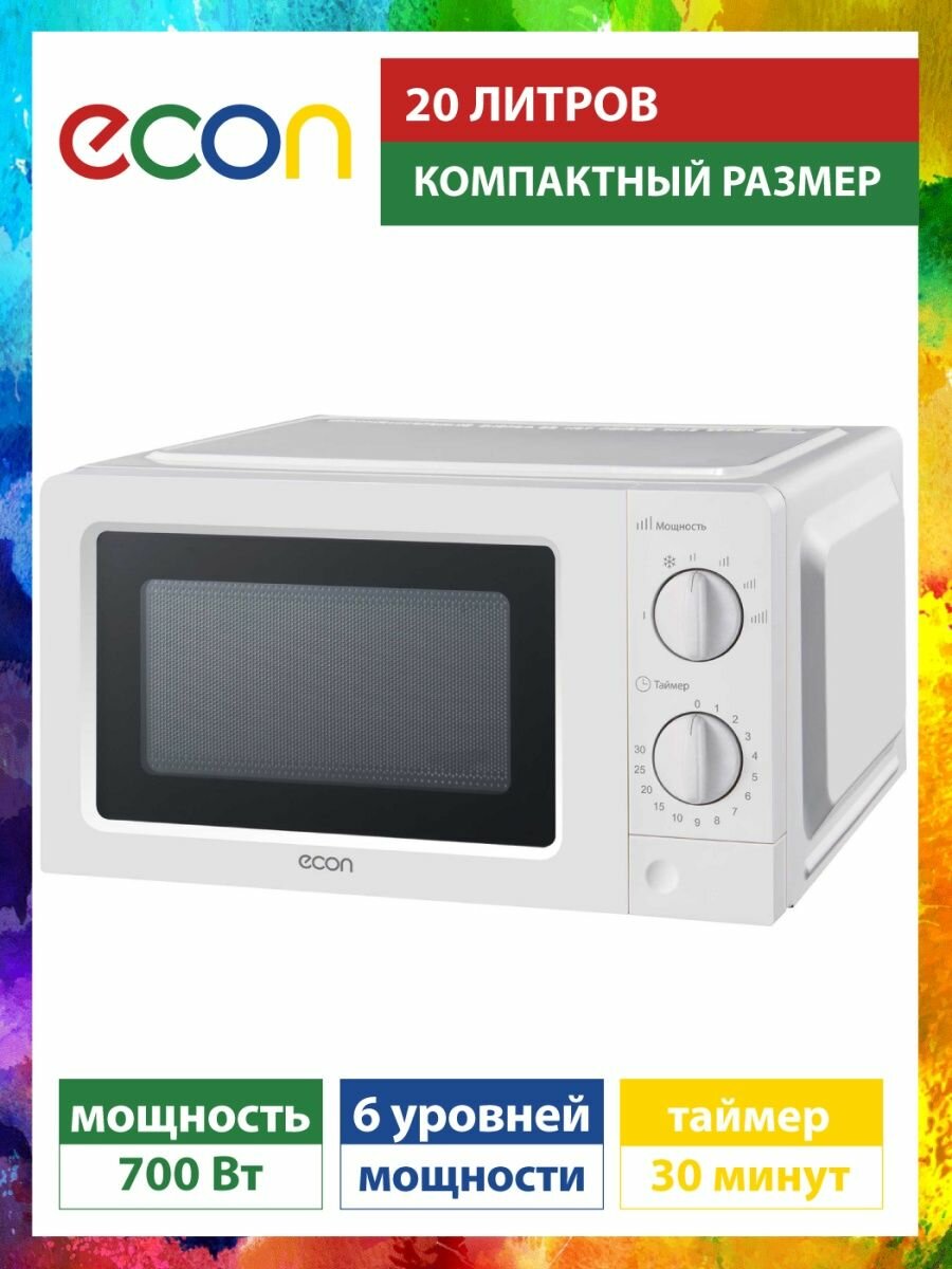 СВЧ ECON ECO-2030M (белая, 20 л, таймер, разморозка)