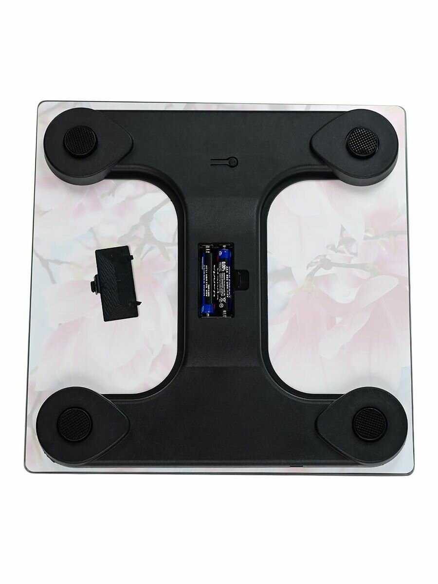 Получила эти веса на подарок, очень понравились. Имеют красивый дизайн, люблю магнолию, приятно утром взвешиваться, появляется хорошее настроение. Сделаны хорошо, большой дисплей, чёткие цифры, показывают точно, вес не скачет из раза в раз, не скользят по полу, главное нужно поставить их на ровную поверхность, автоотключение - батареек хватает надолго. Довольна, теперь могу следить за весом.