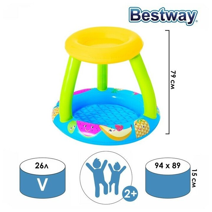 Детский надувной бассейн 94х89х79см BESTWAY "Фрукты" с навесом и надувным дном, 26л, от 2 лет, 52331