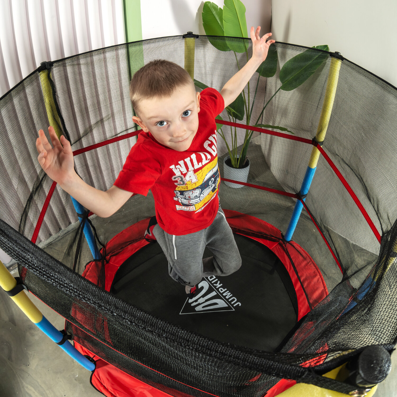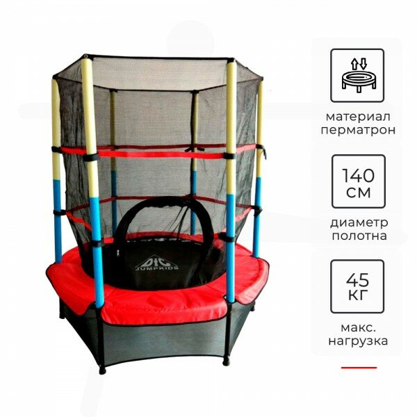 Батут DFC JUMP KIDS 55" с сеткой (красный/желтый/синий)