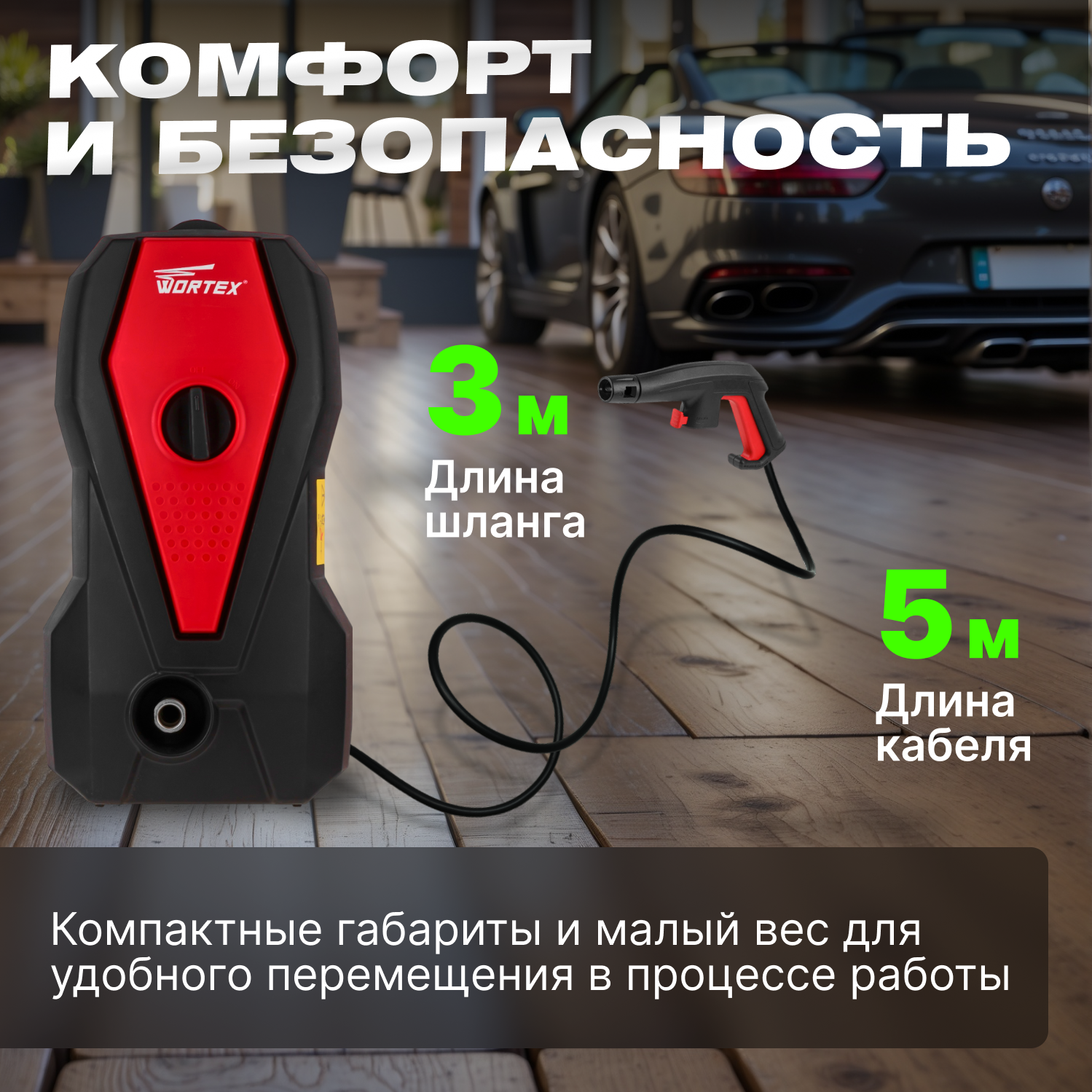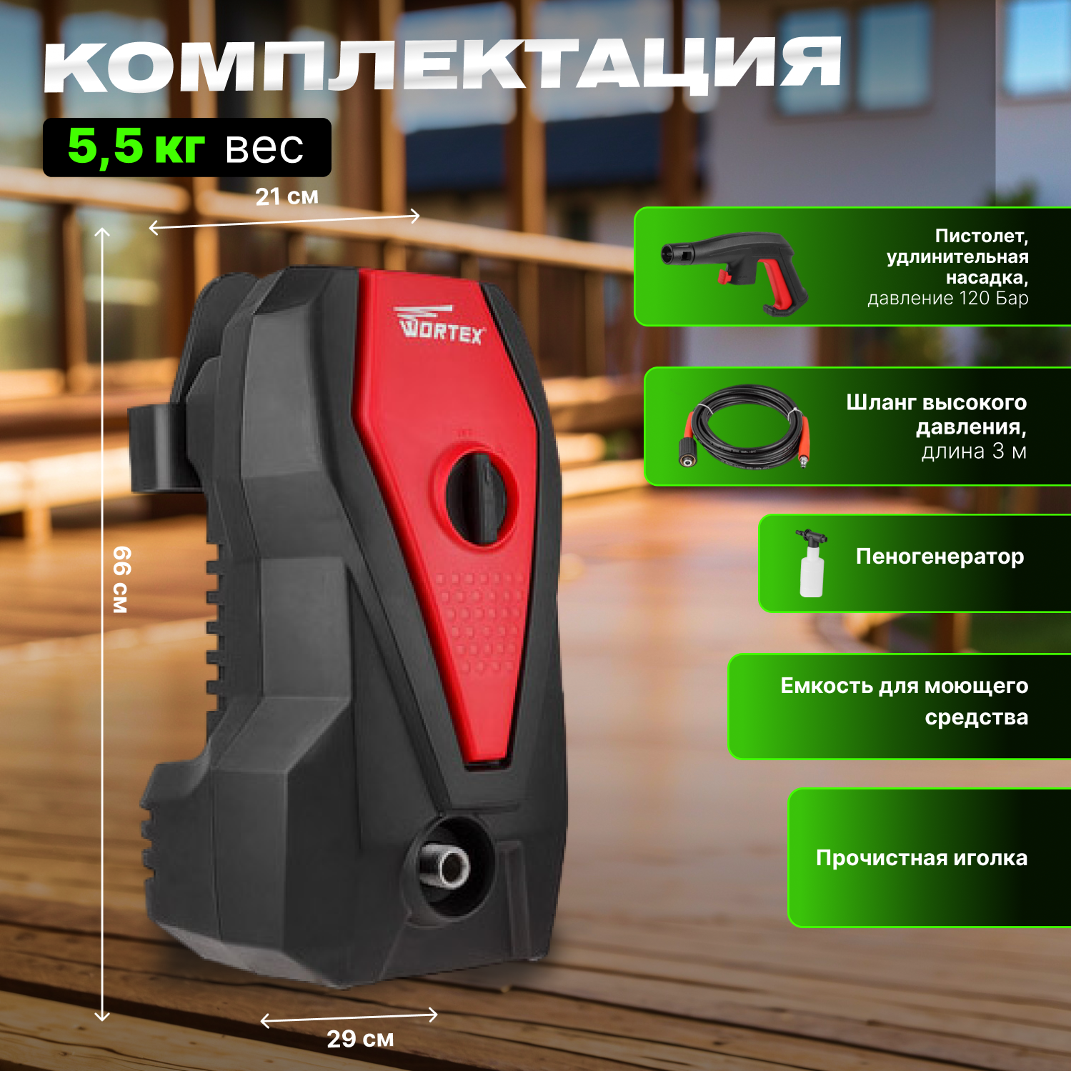 Мойка высокого давления Wortex Мойка высокого давления WORTEX PW 1217 (PW121700025), 120 бар, 390 л/ч