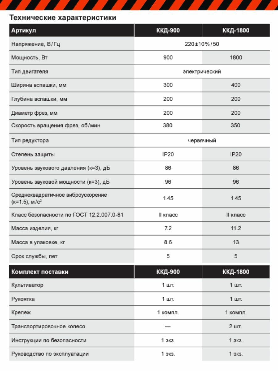 | Комплект поставки | культиватор 1 шт, рукоятка 1 шт, крепеж 1 компл, транспортировочное колесо 2 шт, инструкции по безопасности 1 экз, руководство по эксплуатации 1 экз |