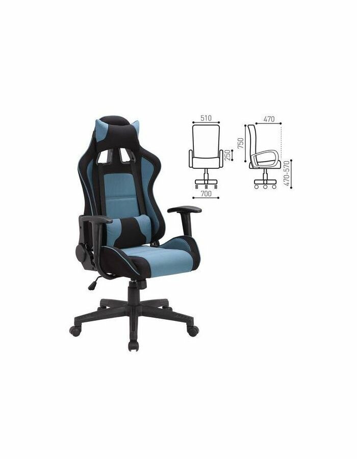 Купить Кресло компьютерное BRABIX "GT Racer GM-100", две подушки, ткань, черное/голубое, 531818