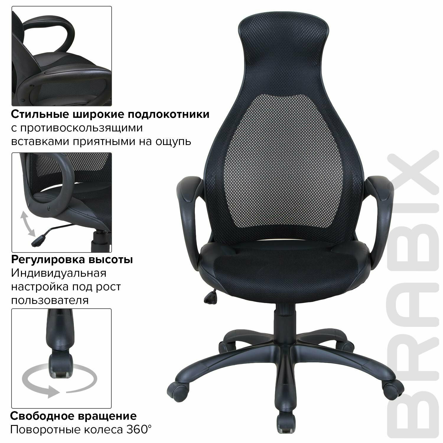 Brabix Кресло офисное Genesis Ex-517, пластик черный, ткань/экокожа/сетка черная, 531574 .