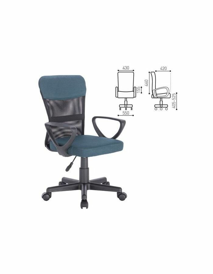 Кресло офисное Brabix компактное "Jet MG-315", с подлокотниками, серо-синее, 531842