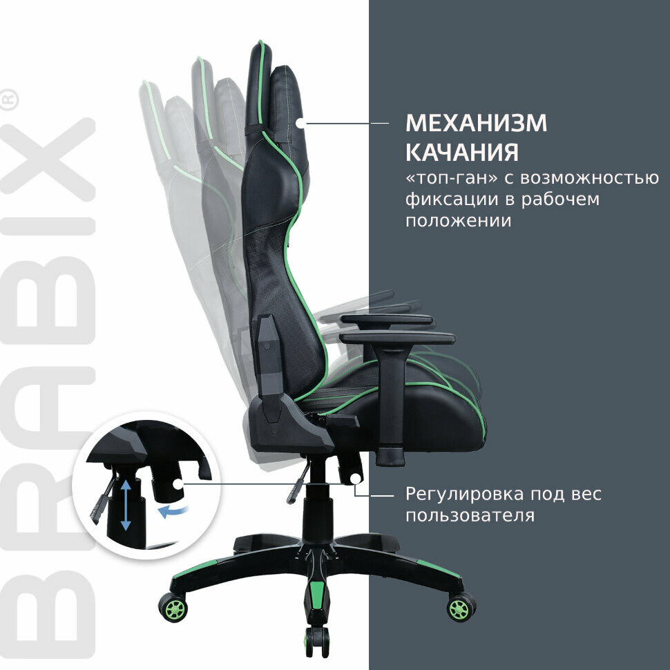 Кресло Brabix ''GT Carbon GM-120'', две подушки, экокожа, черное/зеленое, 531929