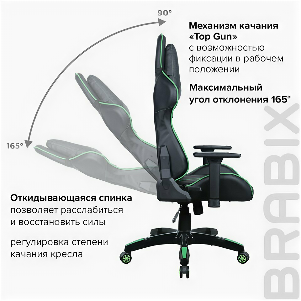 Кресло Brabix ''GT Carbon GM-120'', две подушки, экокожа, черное/зеленое, 531929