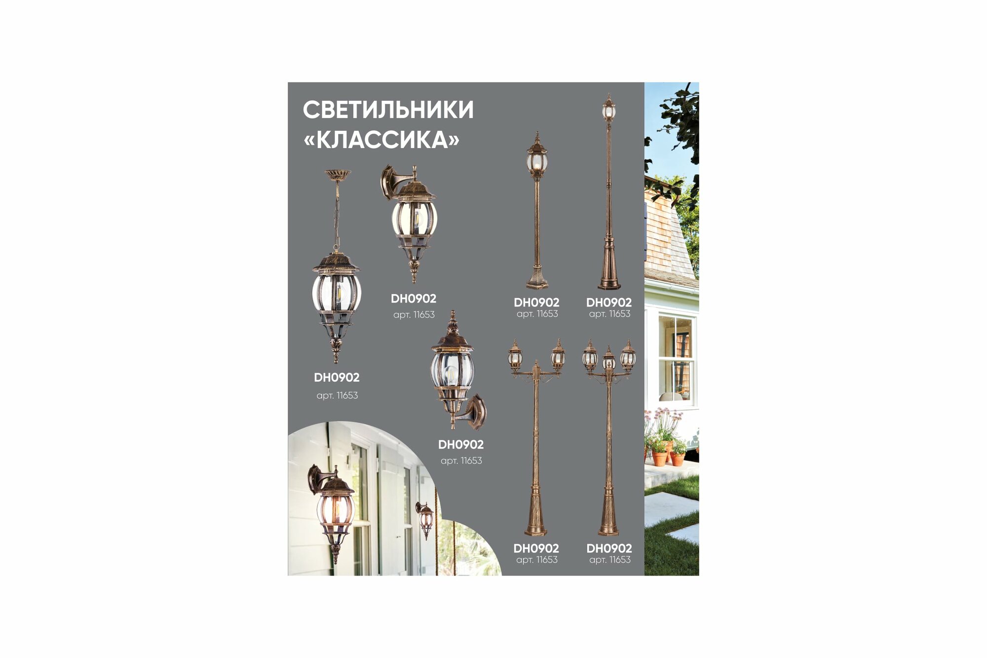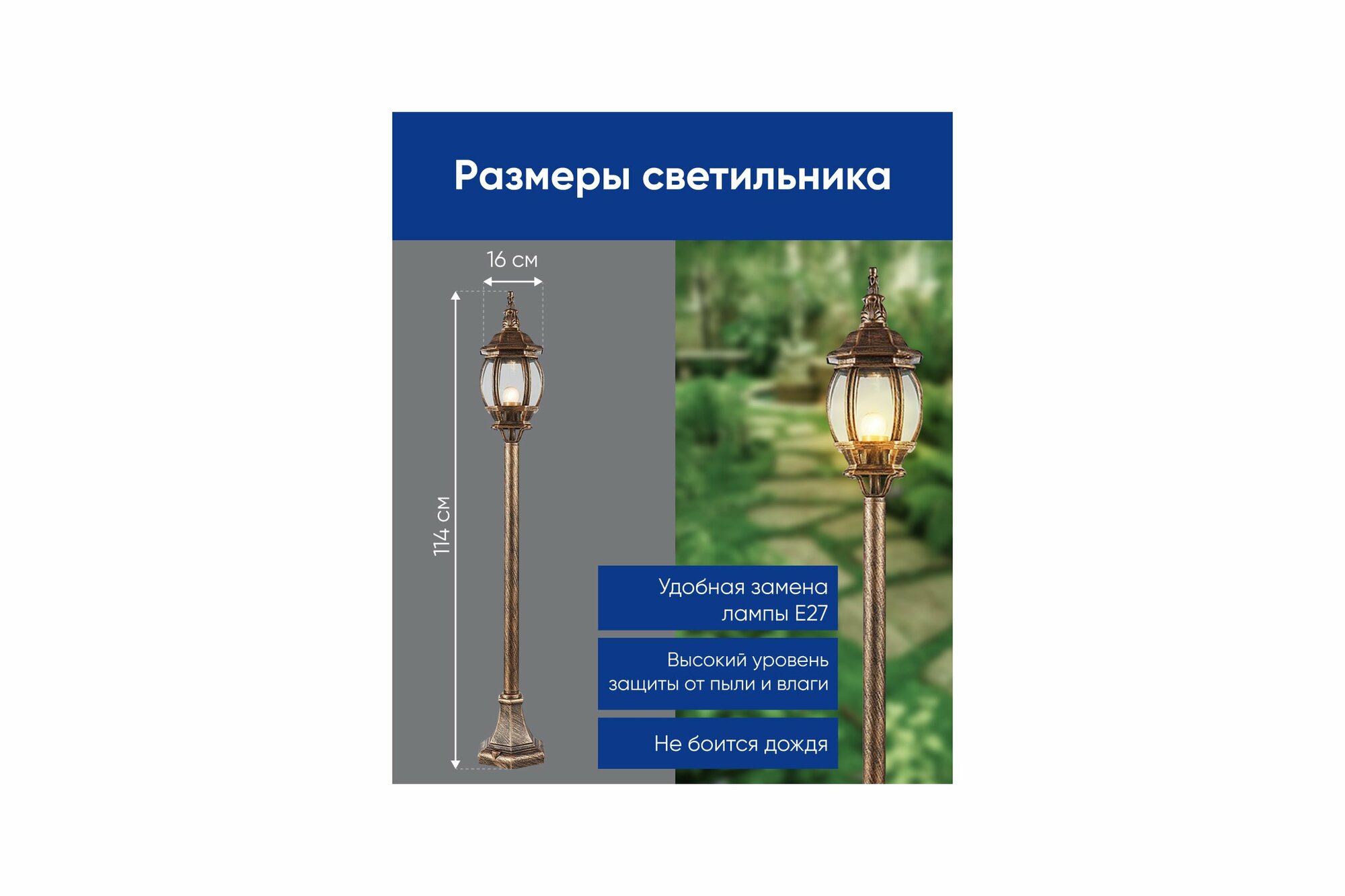 Светильник садово-парковый Классика 8110 E27 160*160*1200мм черное золото 11240