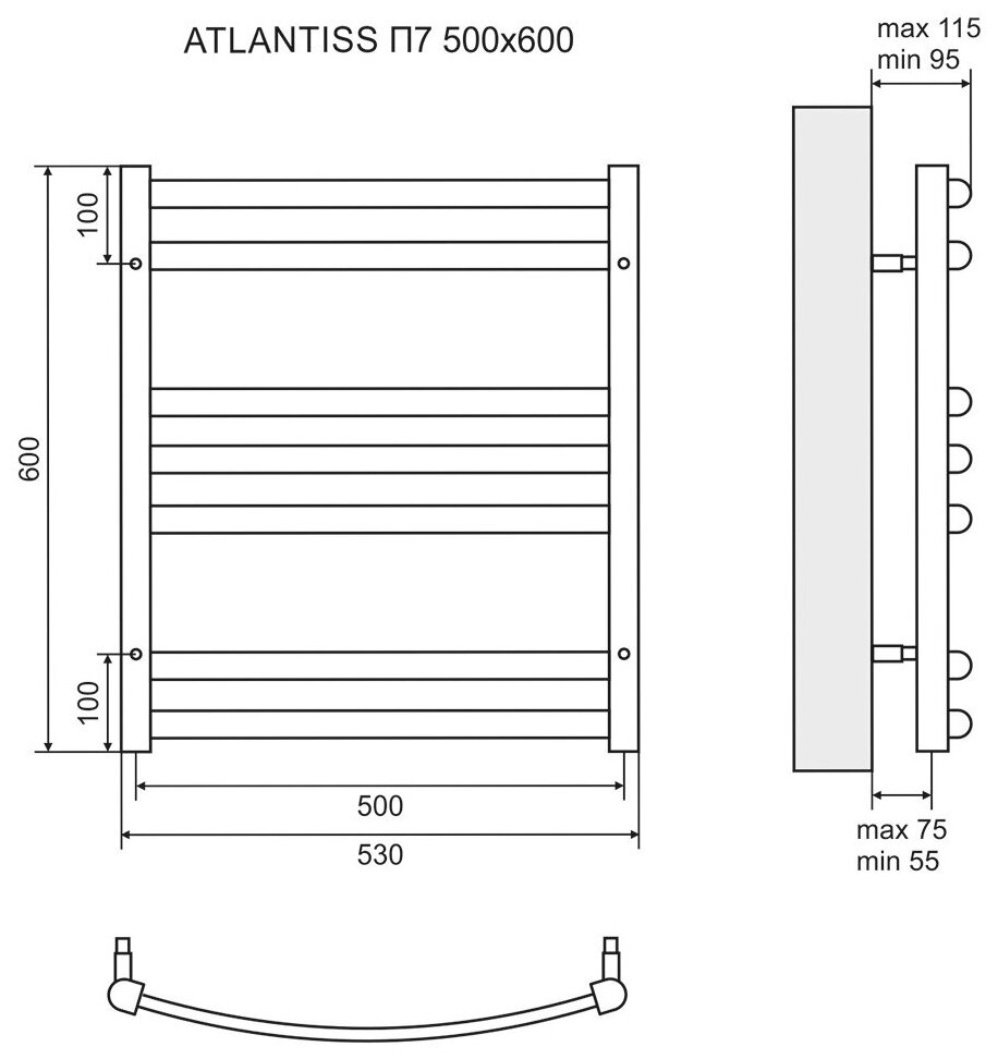 Полотенцесушитель электрический Lemark Atlantiss П7 LM32607REBL 500x600 черный