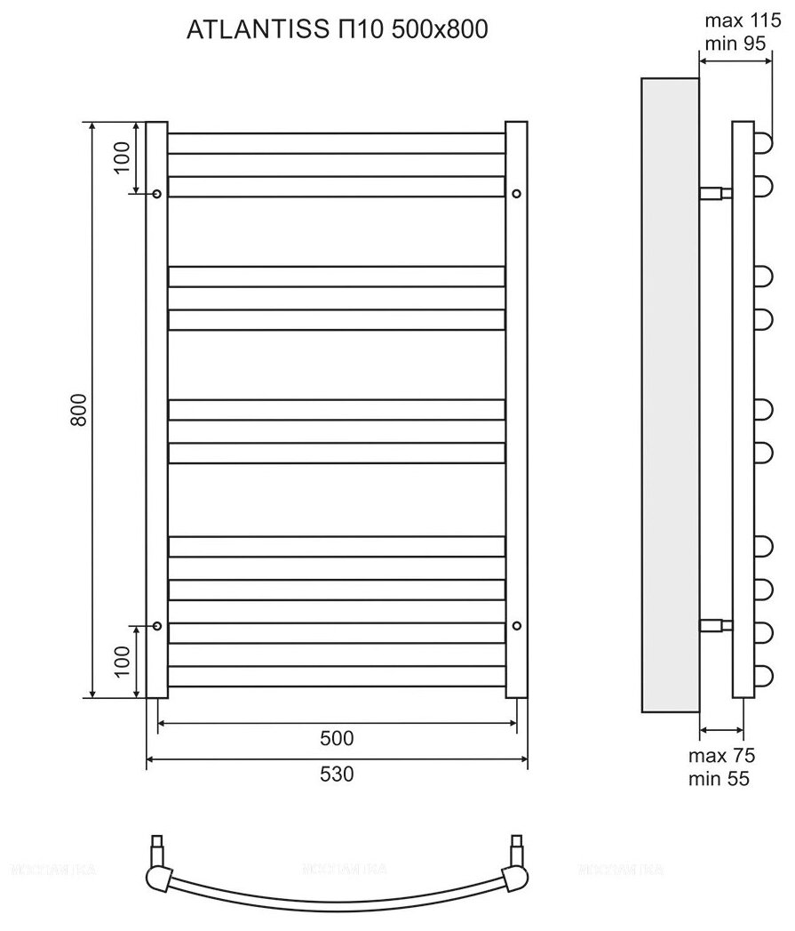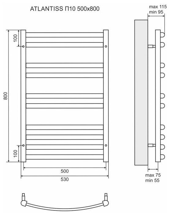 Полотенцесушитель электрический Lemark Atlantiss П10 Lm32810rebl 500x800 левый/правый черный .