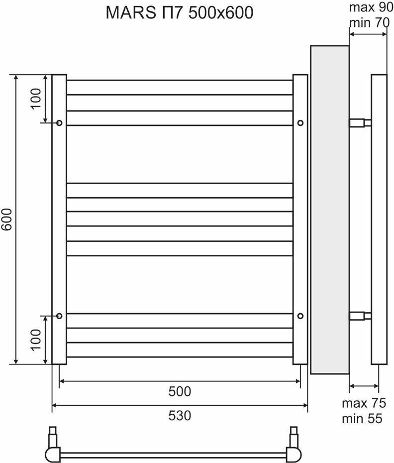 Полотенцесушитель Lemark Mars LM35607 П7 500x600